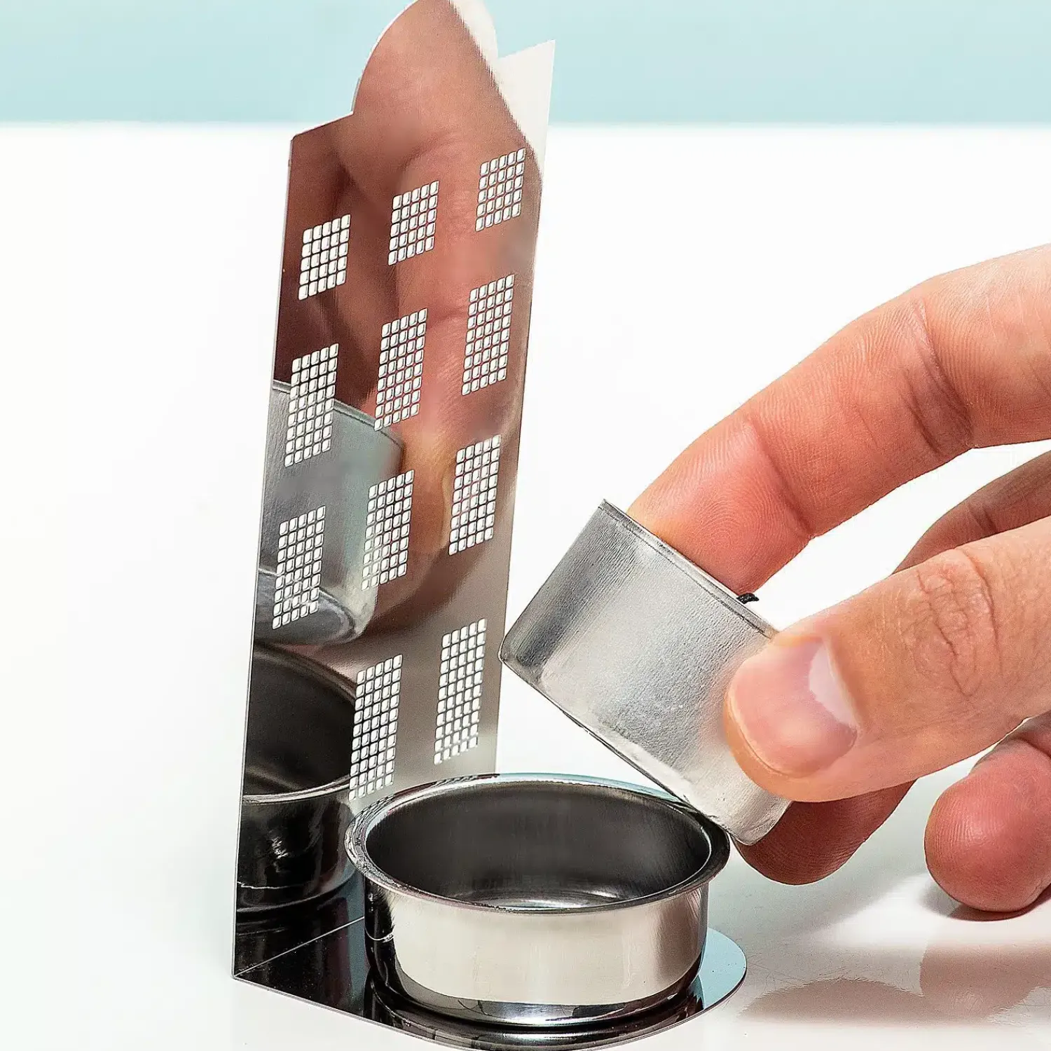 - Licht schijnt door de uitgestanste ruitjes als het waxinelichtje brandt