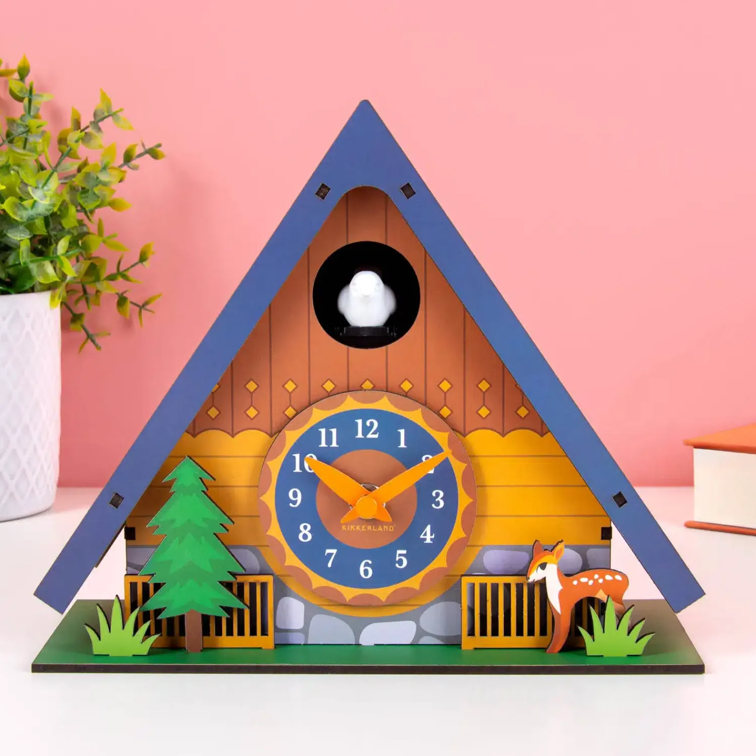 Als je dol bent op de natuur en het buitenleven, dan is de Blokhut koekoeksklok van Kikkerland jou op het lijf geschreven. Deze super schattige koekoeksklok bestaat uit een A-frame huisje in het bos, met houten gevel, een hertje, denneboom én natuurlijk een vogeltje dat zich elk uur laat zien. Het is de liefste klok voor natuurliefhebbers en kinderen die graag in het bos zijn.