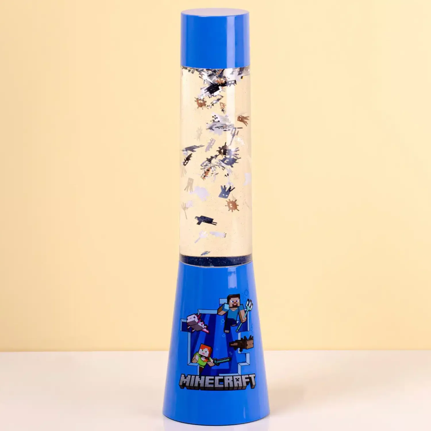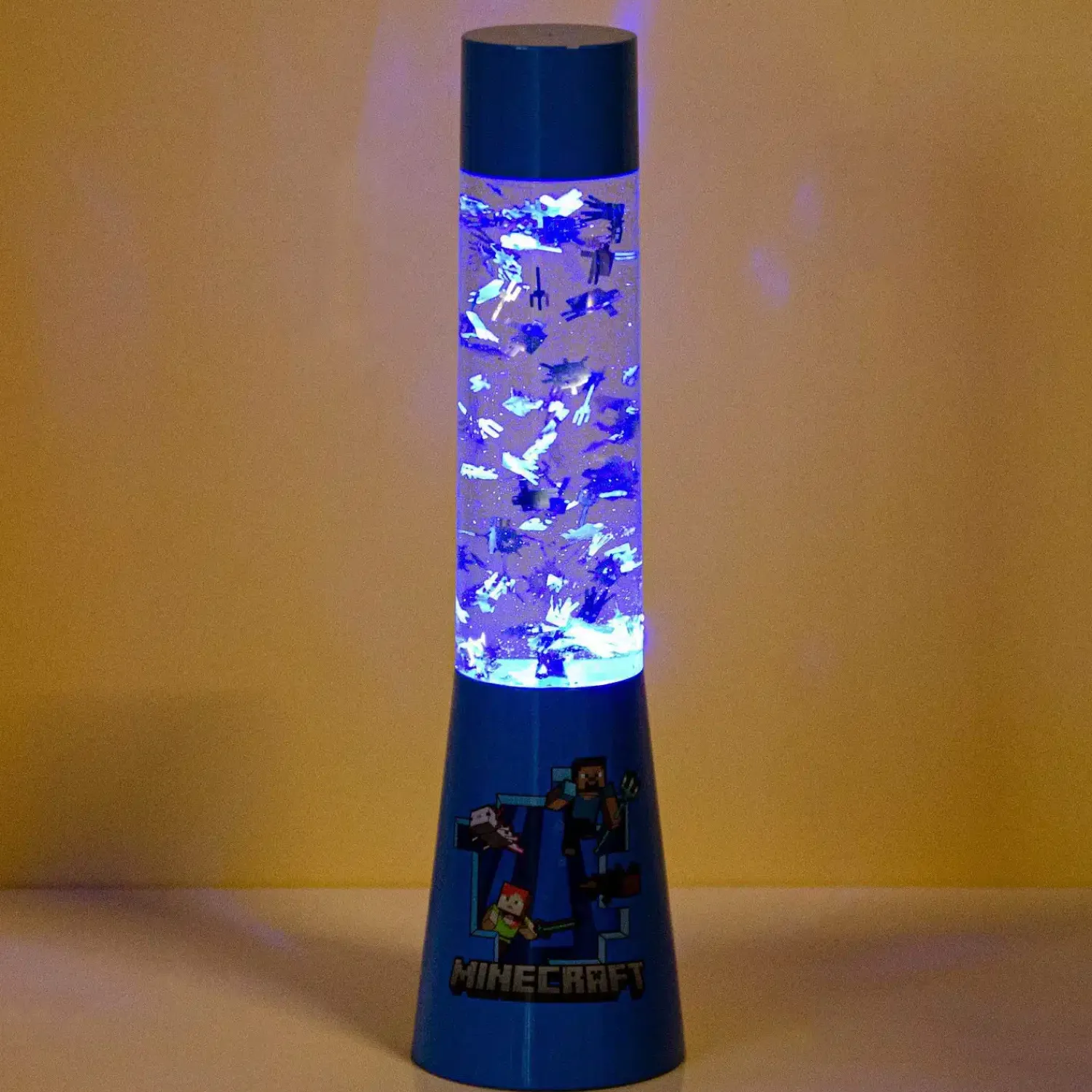 Zoek je een sfeervol cadeautje voor een jonge Minecraft fan? Wij hebben iets leuks voor kinderen: de Iconen lavalamp van Minecraft. Dit is een lamp gevuld met vloeistof, waarin Minecraft iconen van zilverfolie zweven. Door de blauwe verlichting zien deze er extra magisch uit. Perfect voor op het bureau of nachtkastje van je kind.