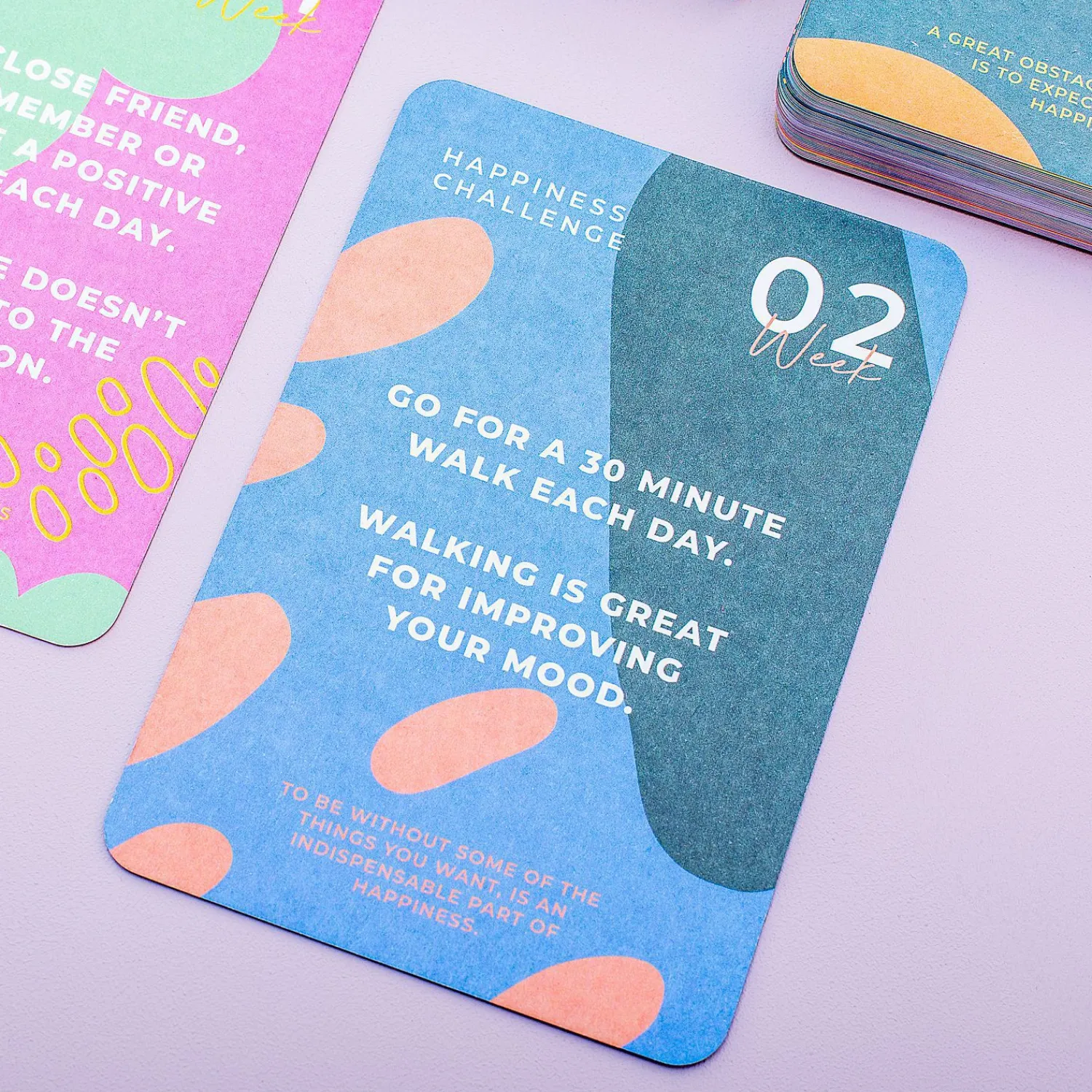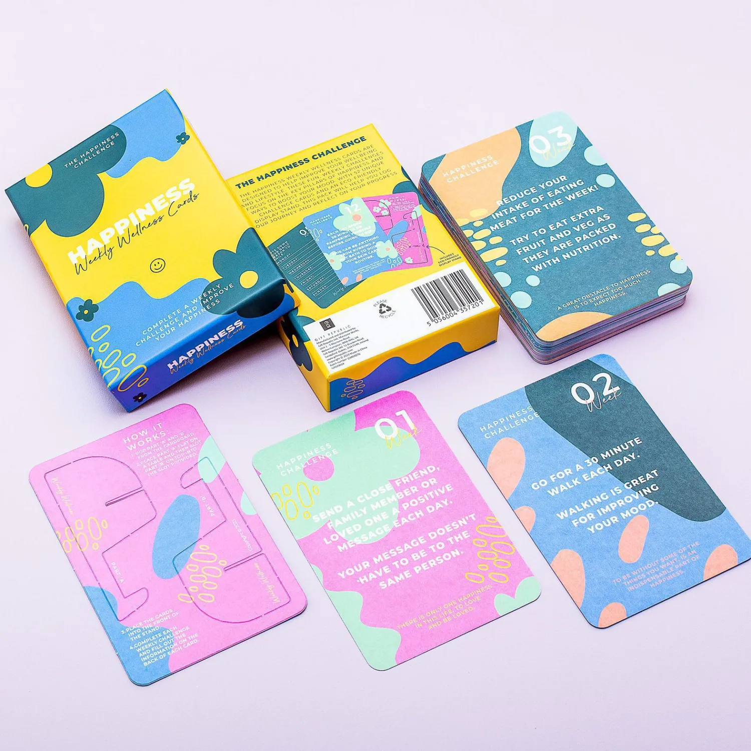 Mindfulness, positiviteit, een gevoel van tevredenheid: allemaal dingen die je kunnen helpen om gelukkiger in het leven te staan. Met de Weekly Wellness kaarten van Gift Republic heb je een handvat om op de door jou gekozen manier te werken aan je eigen geluk. We hebben verschillende kaartensets, die je tips en oefeningen geven om positiever en energieker te voelen. Elke week pak je een nieuwe kaart en voer je de opdracht uit die hier op staat.