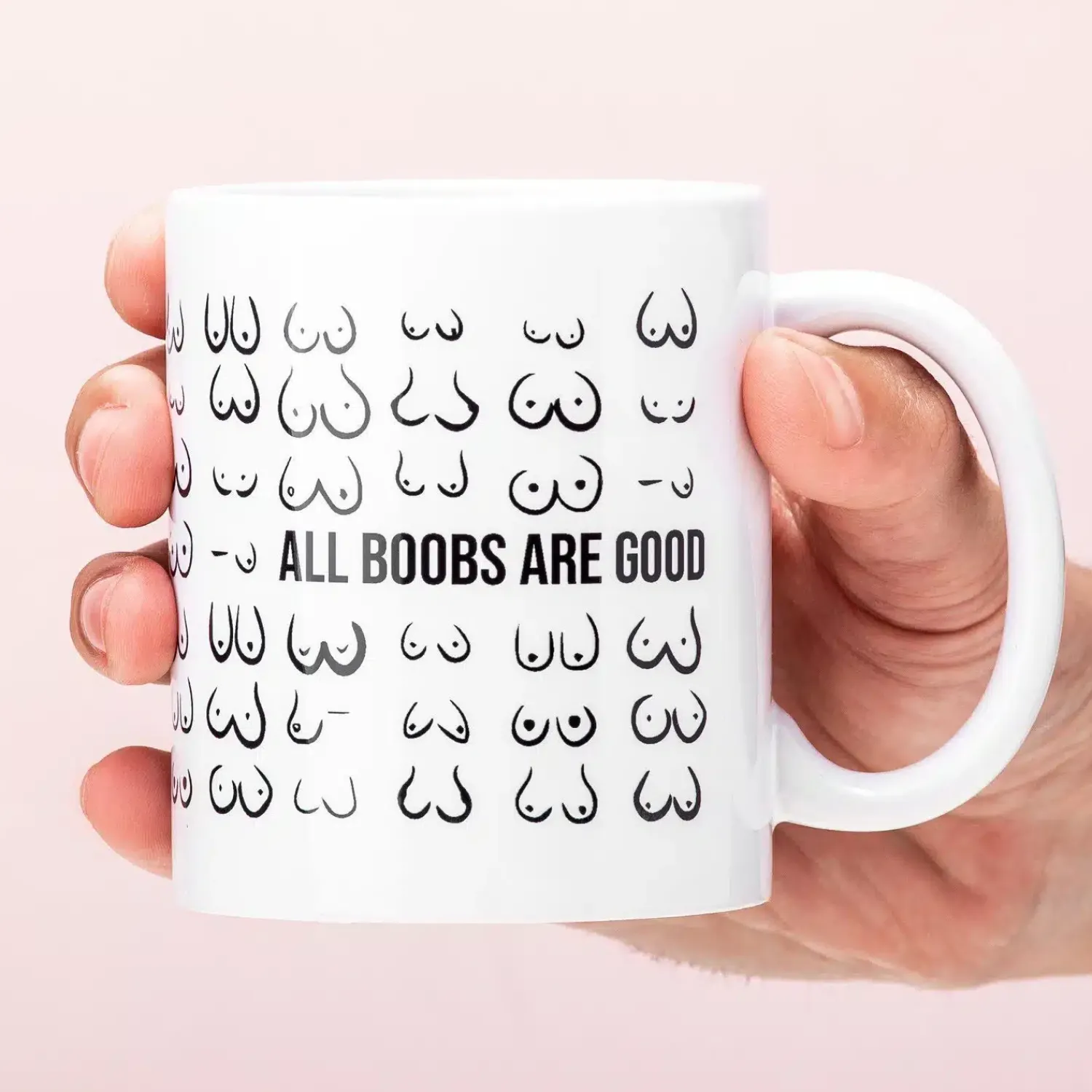 Groot, klein, hangend, pront, puntig en rond: alle borsten zijn mooi! Vier je borsten met de feministische All Boobs Are Good mok. Voorbij is de tijd dat wij, vrouwen, ons laten vertellen wat wel of niet mooi is. Ben jij dol op je lichaam zoals het is en ben je ook helemaal voor zelfverzekerde vrouwen en meisjes? Met deze mok laat jij zien waar je voor staat.