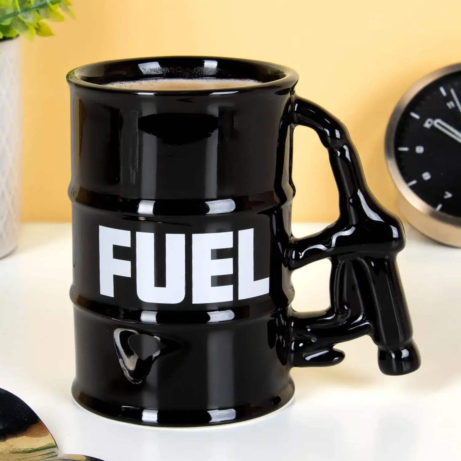 Tijd om bij te tanken? Deze Benzinepomp mok zorgt ervoor dat je weer vol energie zit! Met zijn gave benzinepomp-design en handige hendel als oor voel je je elke ochtend als een echte monteur die zijn tank vult. Perfect voor autoliefhebbers, racefans of gewoon voor mensen die hun koffie op een coole manier willen drinken.