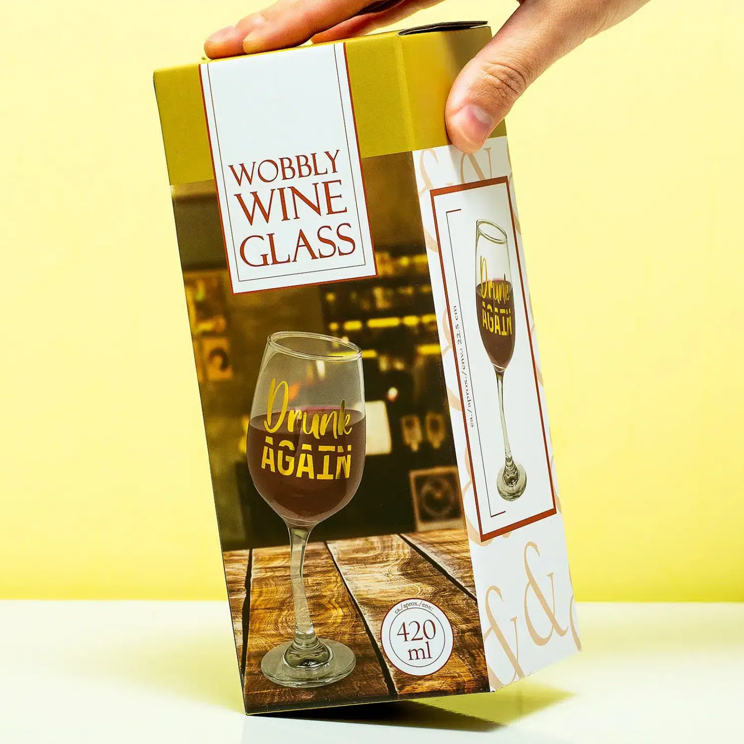 Ben je weer dronken of lijkt dat gewoon zo? Als je drinkt uit het Drunk Again scheef wijnglas van Out of the Blue dan begin je vanzelf aan jezelf te twijfelen. Het glas is namelijk scheef, waardoor het lijkt alsof je veel te veel gedronken hebt. Een lollig glas om aan een vriendin te geven.