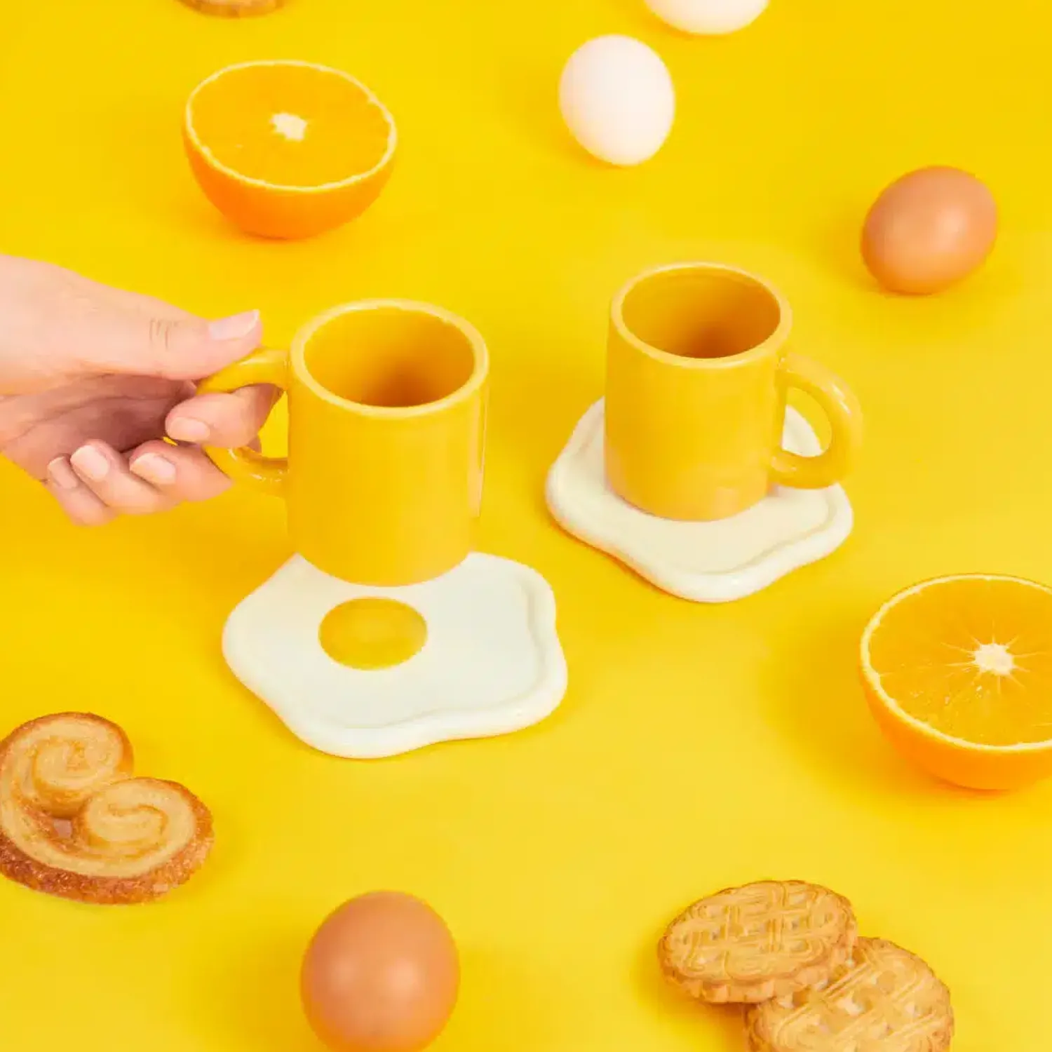 - Set van 2 koppen met spiegelei schoteltjes