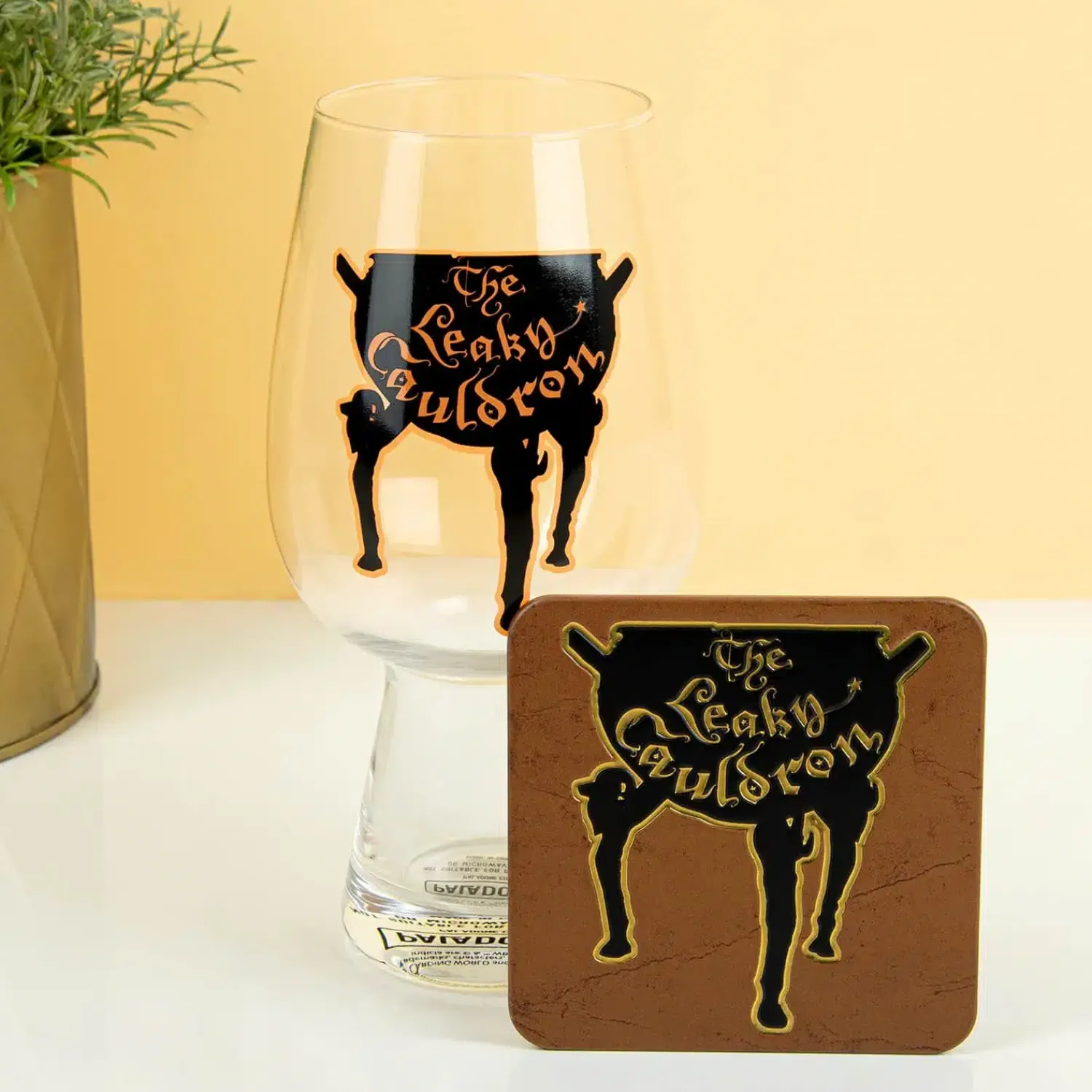 - Glas met het logo van The Leaky Cauldron