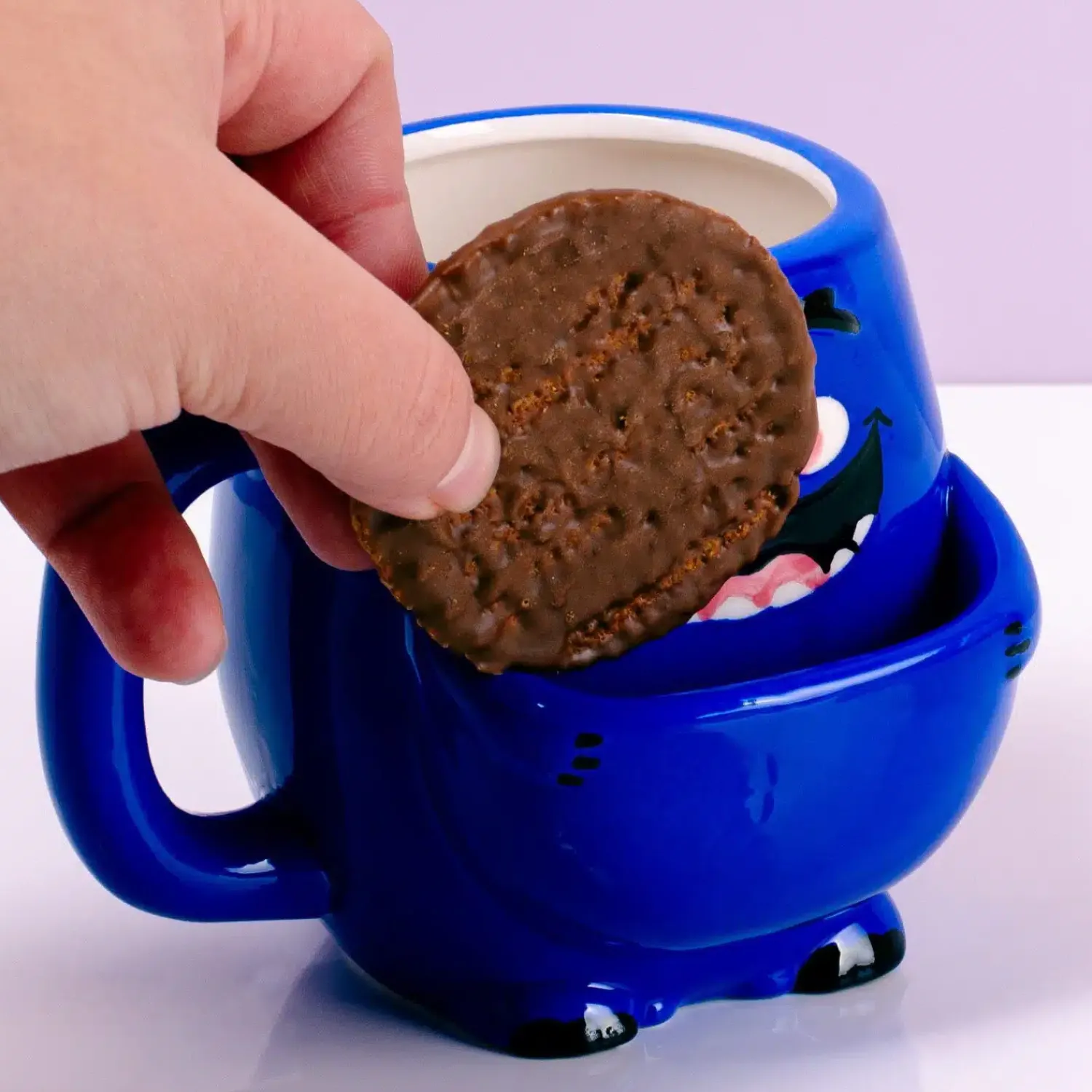 Het is de makkelijkste manier om kinderen hun melk of thee op te laten drinken: serveer het gewoon in de Monster mok met koekvakje van Out of the Blue. Een super grappige mok die eruit ziet als monster, maar dan wel een heel vrolijk exemplaar. De beker heeft een koekvakje aan de voorkant, waar je bijvoorbeeld een chocolate chip cookie in kunt doen.