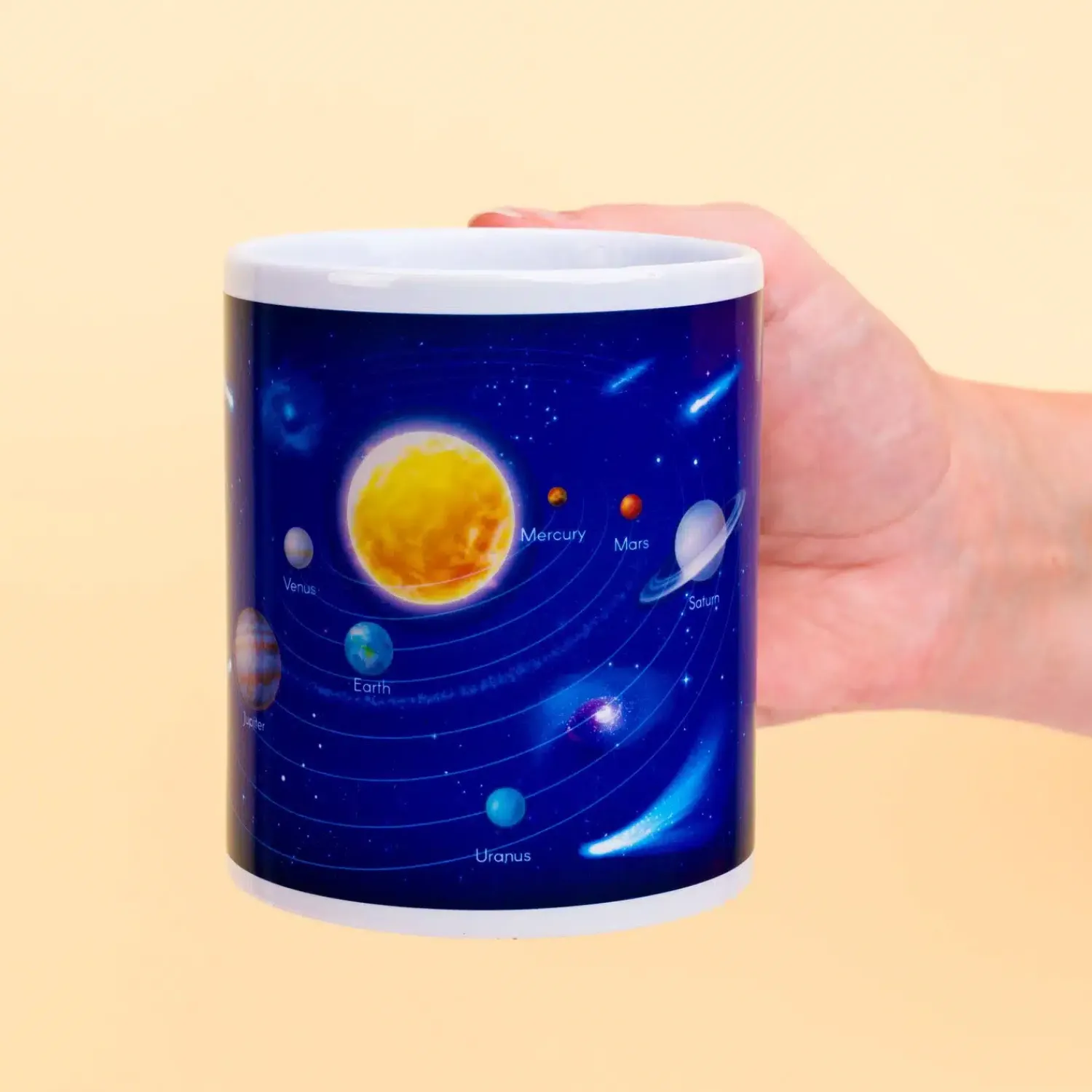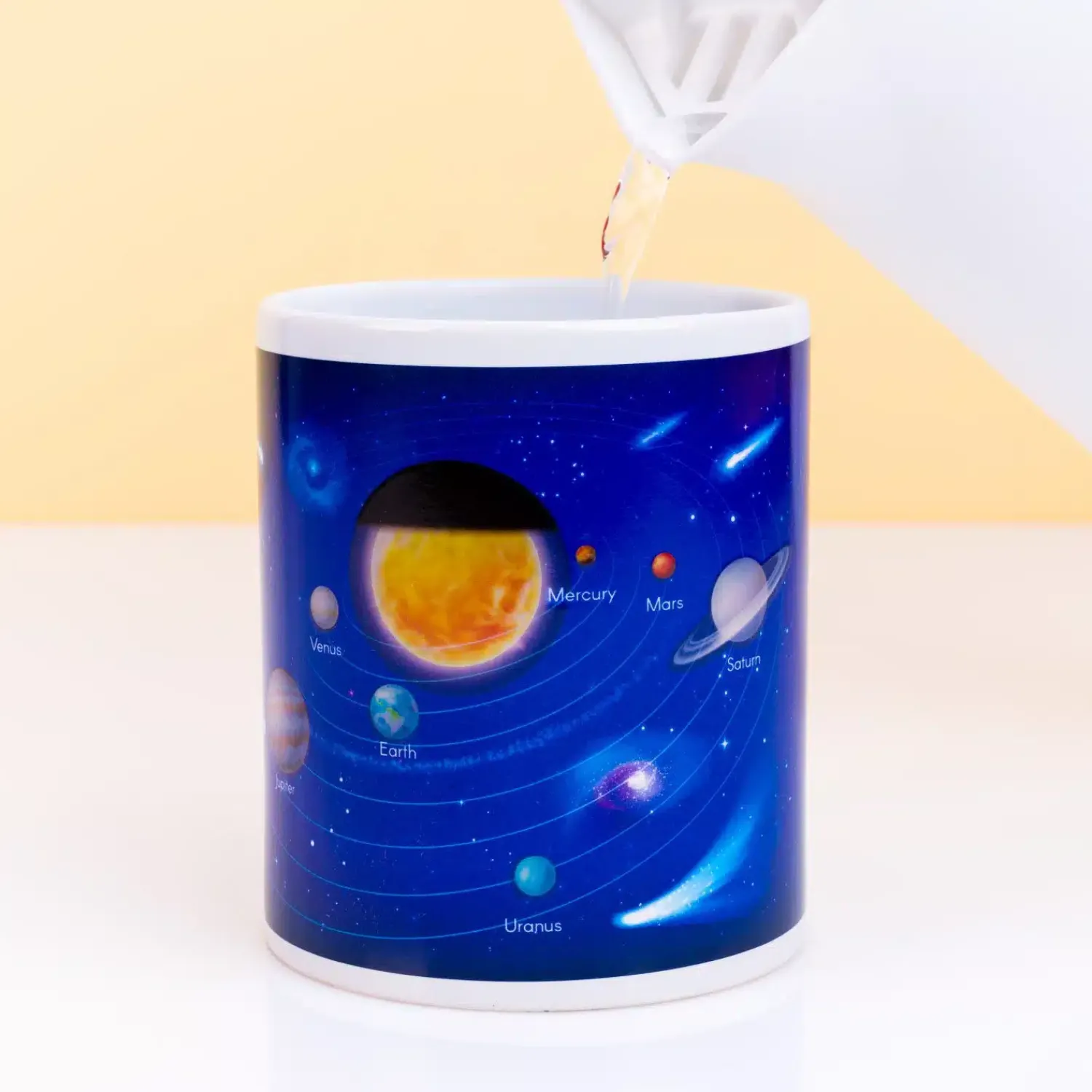 - Warmtegevoelige mok met het zonnestelsel