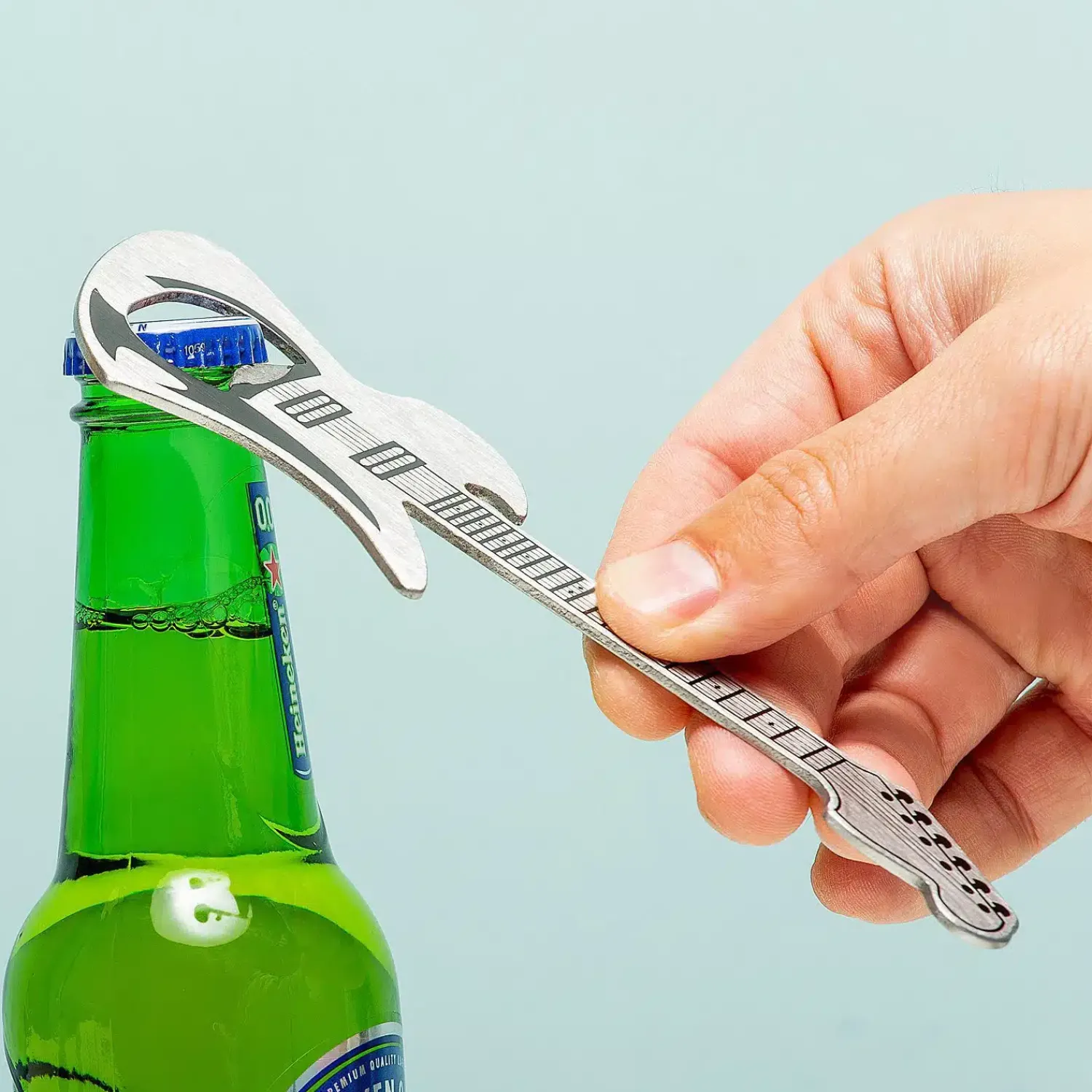 Maak je biertje open als een rockster, met de Gitaar flesopener van Suck UK. Deze coole bieropener ziet eruit als een elektrische gitaar. Er komt geweldig geluid uit ook: de bevredigende ‘plop’ van een bierdopje dat van de fles wordt gehaald. Deze coole gitaar flesopener is het perfecte housewarmingcadeau, verjaardagscadeau voor rocksterren of gewoon als aardigheidje voor je oude pa, die dol is op een biertje.