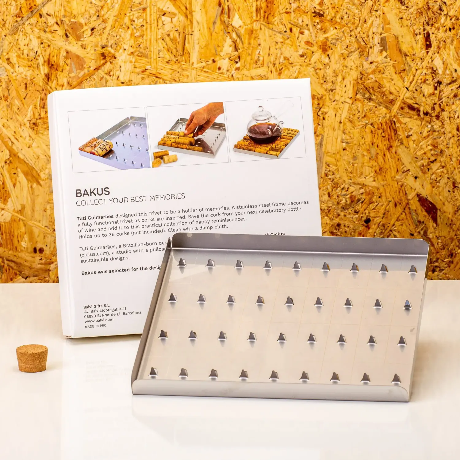 Trek jij graag een bijzondere fles wijn open voor een speciale gelegenheid? Je zou laten de lege fles kunnen bewaren als herinnering, maar dat neemt zoveel ruimte in beslag. Maar met de Bakus wijnkurken onderzetter van Balvi kun je je herinneringen op een praktische manier bewaren. Deze onderzetter is gemaakt voor het bewaren van wijnkurken. Hij heeft plek voor 36 kurken, waarna je hem ook daadwerkelijk als pannenonderzetter kunt gebruiken. Dit ontwerp van Tati Guimarães is geselecteerd voor de designcollectie van het MoMA.