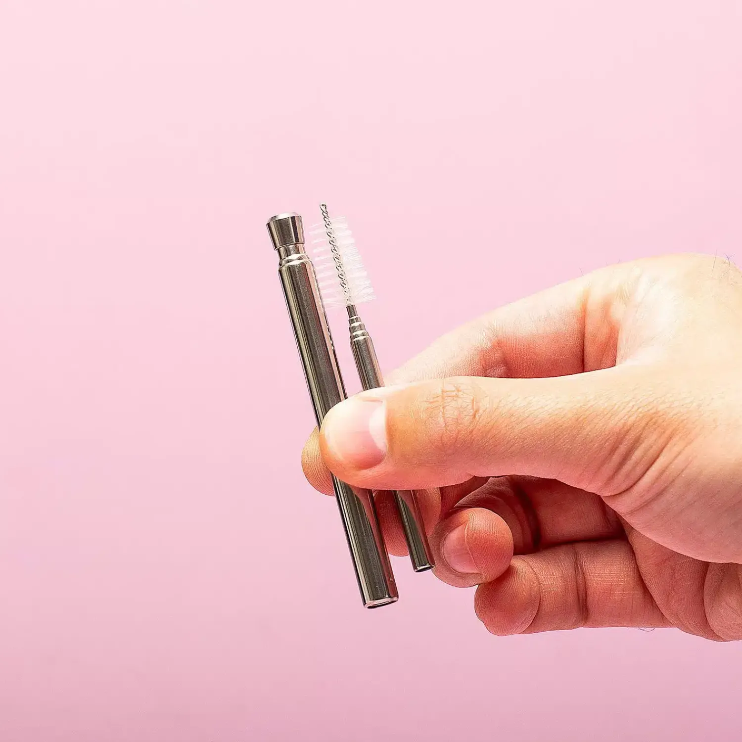 Dat plastic rietjes steeds meer uit het straatbeeld verdwijnen is een heel positieve ontwikkeling. Maar niet voor iedereen. Voor kinderen of mensen met een handicap is een rietje soms onmisbaar. En anderen vinden het gewoon fijn om een rietje te gebruiken, omdat het zo feestelijk staat in een cocktail. Daarom komt Kikkerland met het Uitschuifbare rvs rietje in reisverpakking. Dit handige rietje is een milieuvriendelijk alternatief voor plastic rietjes. Het is inschuifbaar en zit in een reisetui, waardoor je het eenvoudig mee kan nemen onderweg. Naast het rietje zit er ook een telescopisch borsteltje in de verpakking, waarmee het rietje te reinigen is.