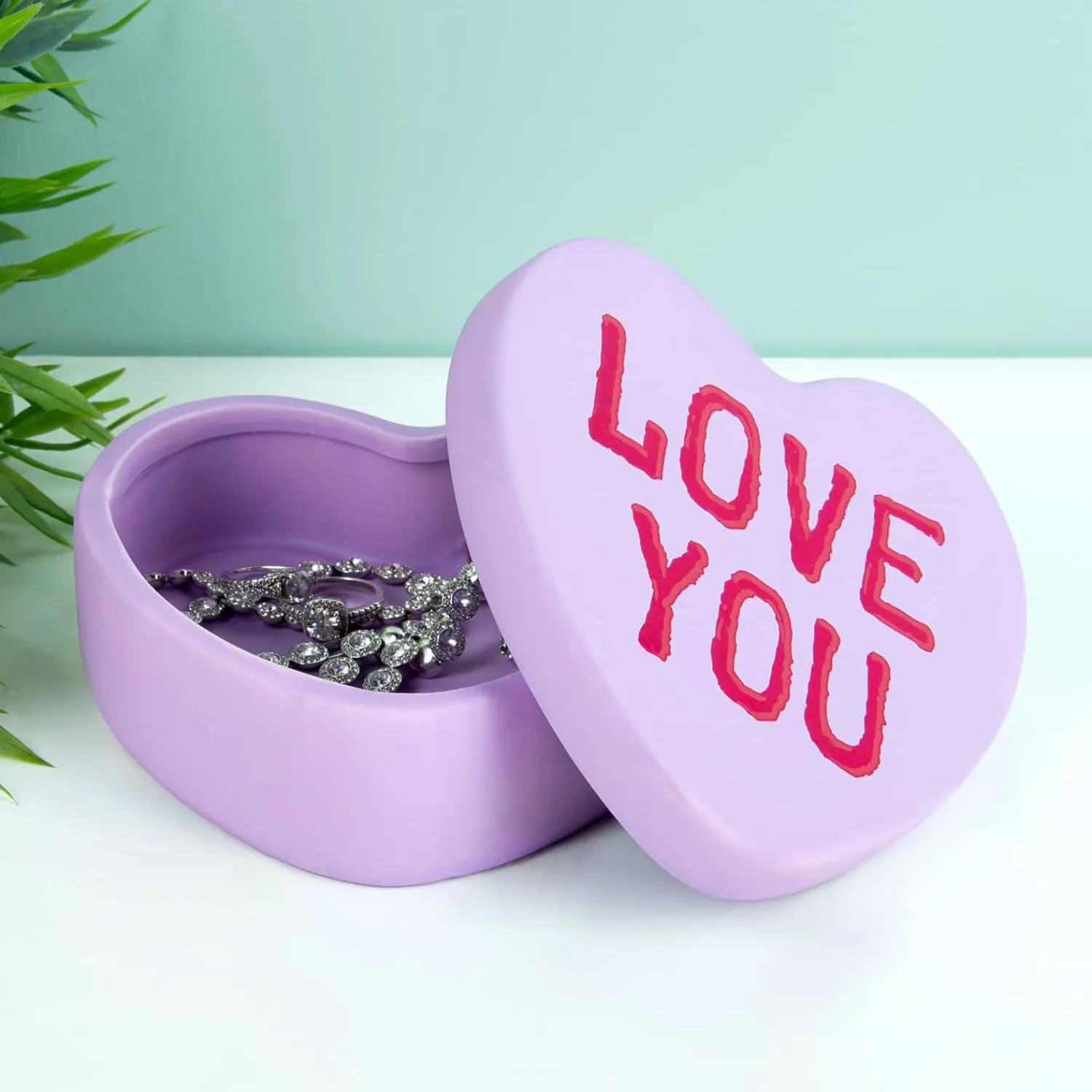 Je mooiste en meest waardevolle sieraden bewaar je natuurlijk op een veilige plek. In het Snoephart sieradenbakje van Bitten bijvoorbeeld! Dit vrolijke snoephartje bestaat uit een bakje met een deksel met tekst. Het is ideaal voor sieraden en staat heerlijk snoeperig op je nachtkastje. Maar je kunt het natuurlijk ook op je bureau zetten om er kleine bureauaccessoires in te doen, zoals paperclips en elastiekjes, of het gebruiken voor sleutels.