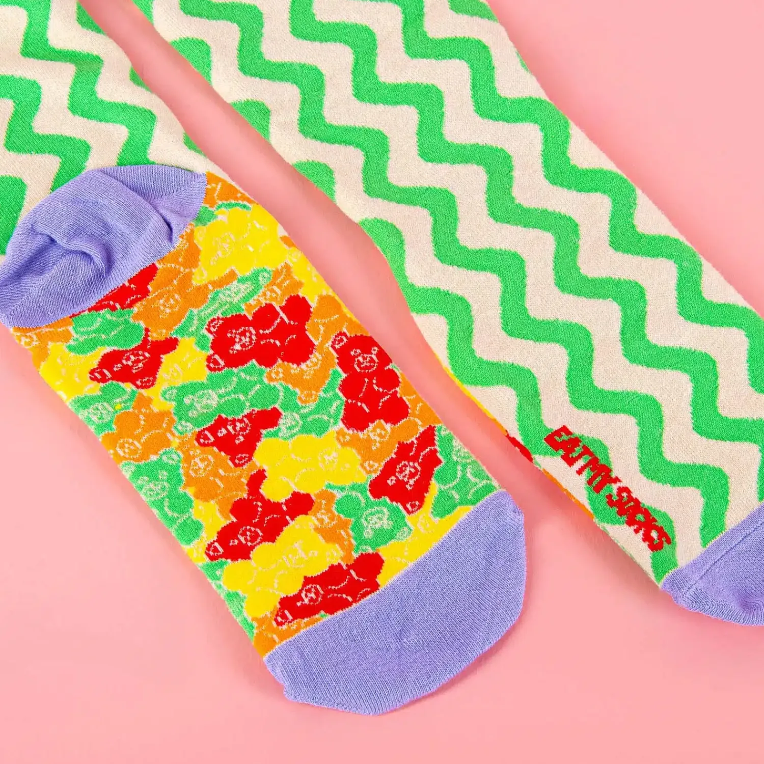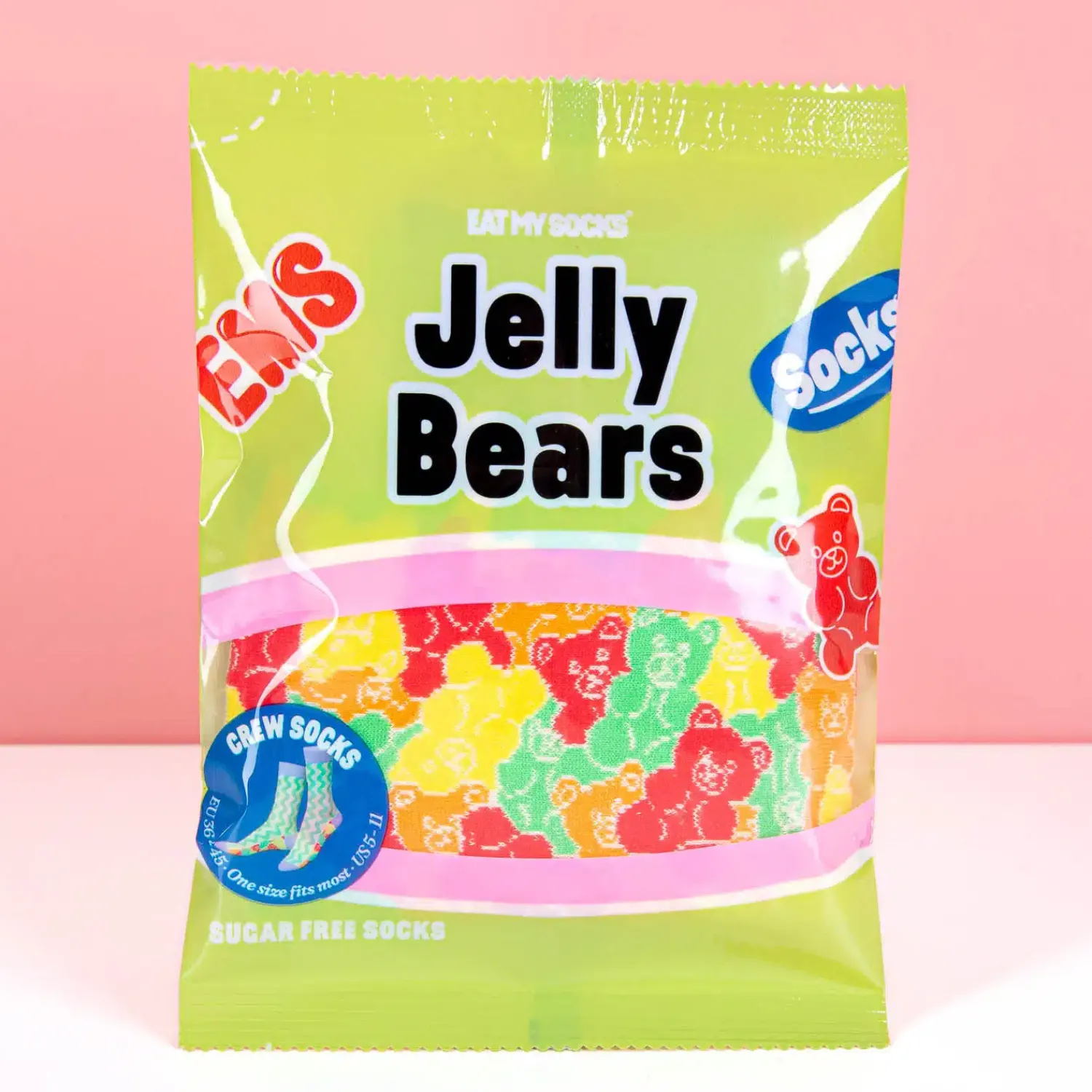 - Sokken die in de verpakking lijken op gummibeertjes