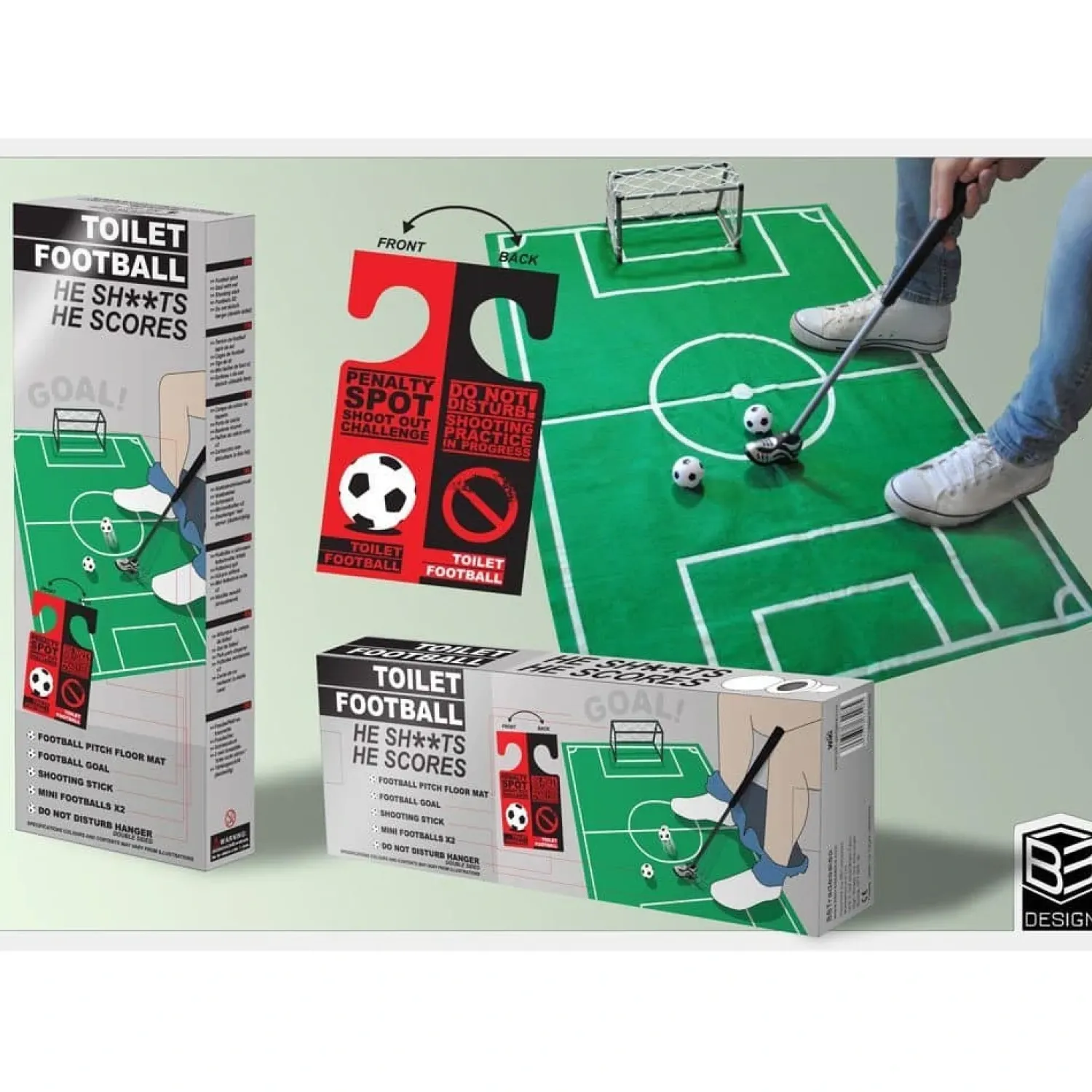 Toilet Football is een unieke wc-mat, waar een voetbalveld op staat. Daarbij krijg je twee balletjes, een doel en een golfstick met een voetbalschoen aan de onderkant. Zo kan je naar hartenlust je penalty’s oefenen terwijl je je grote boodschap doet. Tja, wij hebben het ook niet bedacht. Je koopt Toilet Football online bij Ditverzinjeniet.nl.