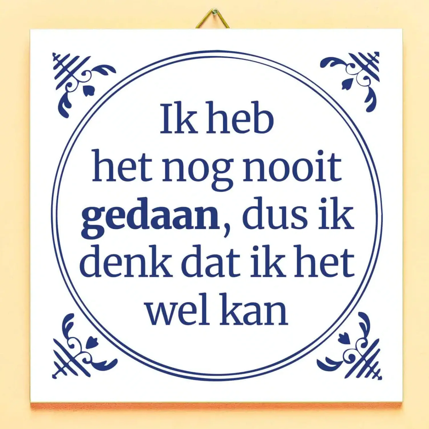 Zoek je een cadeautje voor iemand die jou inspireert met zijn of haar doorzettingsvermogen? Of ben je zelf iemand die alles probeert? Het Tegeltje Ik heb het nog nooit gedaan is dan perfect voor jou. Op het tegeltje staat de uitspraak: ik heb het nooit gedaan, dus ik denk dat ik het wel kan. Niet van Pippi, wel een mooie motiverende quote.