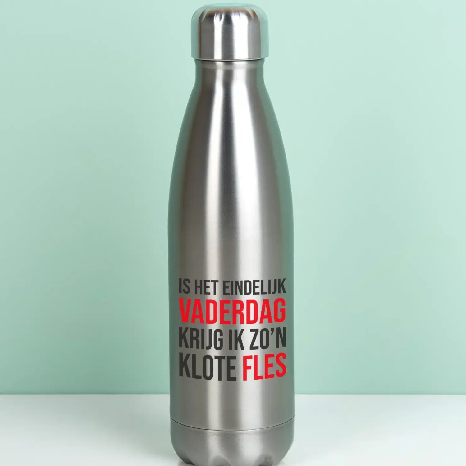Waarmee verras jij je vader deze Vaderdag? Wij zijn helemaal fan van de Thermosfles Is het eindelijk Vaderdag. Een duurzame thermosfles, met daarop de tekst: Is het eindelijk Vaderdag, krijg ik zo’n klote fles. De fles voorziet je pa elke dag van lekker koel water of juist van warme koffie. In totaal blijven dranken in deze dubbelwandige rvs fles 12 uur warm of 24 uur koel. Ideaal tijdens wandeltochten, de rit naar het werk of tijdens het sporten.