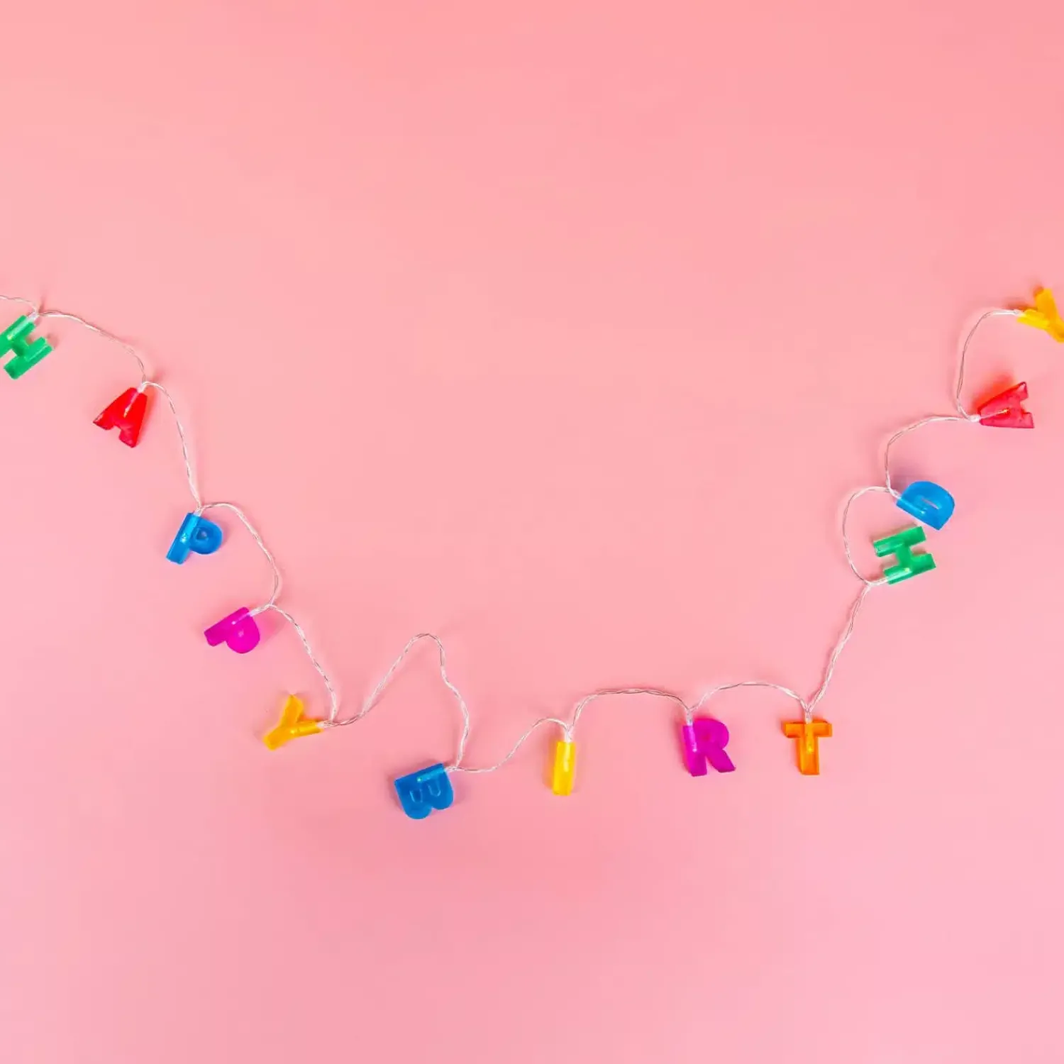 - Vrolijk lichtsnoer met de tekst Happy Birthday