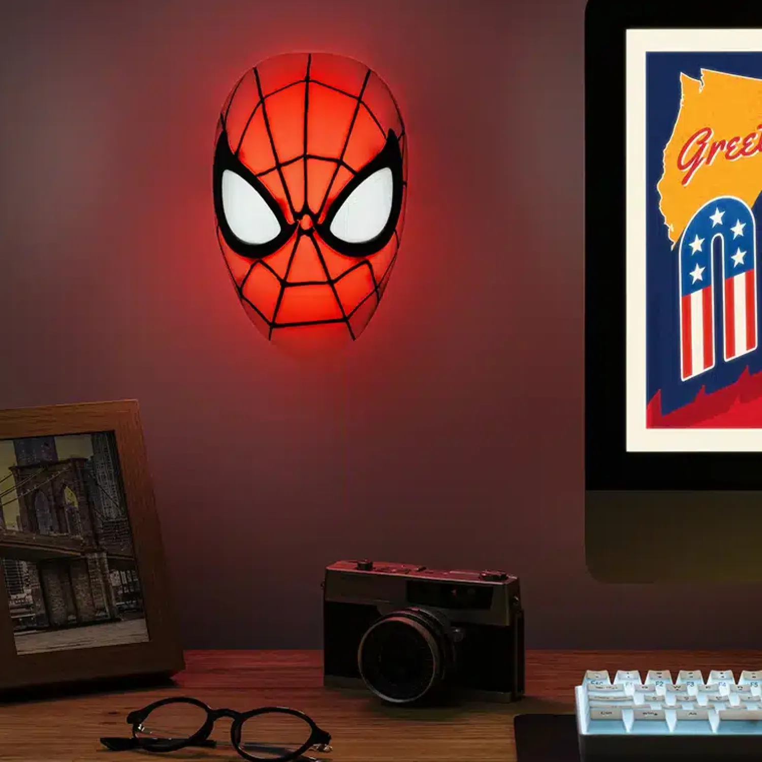 Versterk je spidey senses! De Spiderman Masker lamp is een lamp in de vorm van het masker van Spiderman. Deze lamp kun je aan de muur hangen of gewoon neerzetten, maar één ding is zeker: jij voelt je extra veilig met dit masker in je slaapkamer. Een origineel cadeautje voor grote en kleine Marvel fans.