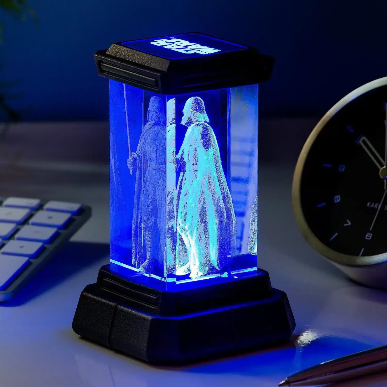 Als groot fan van Star Wars herken jij Darth Vader natuurlijk direct. De Darth Vader hologram lamp van Star Wars is een uniek item op je bureau. Darth Vader heeft een driedimensionale look, waardoor het lijkt alsof hij elk moment zo uit de lamp kan stappen. Verlicht hem in het rood, blauw of wisselend in deze twee kleuren.
