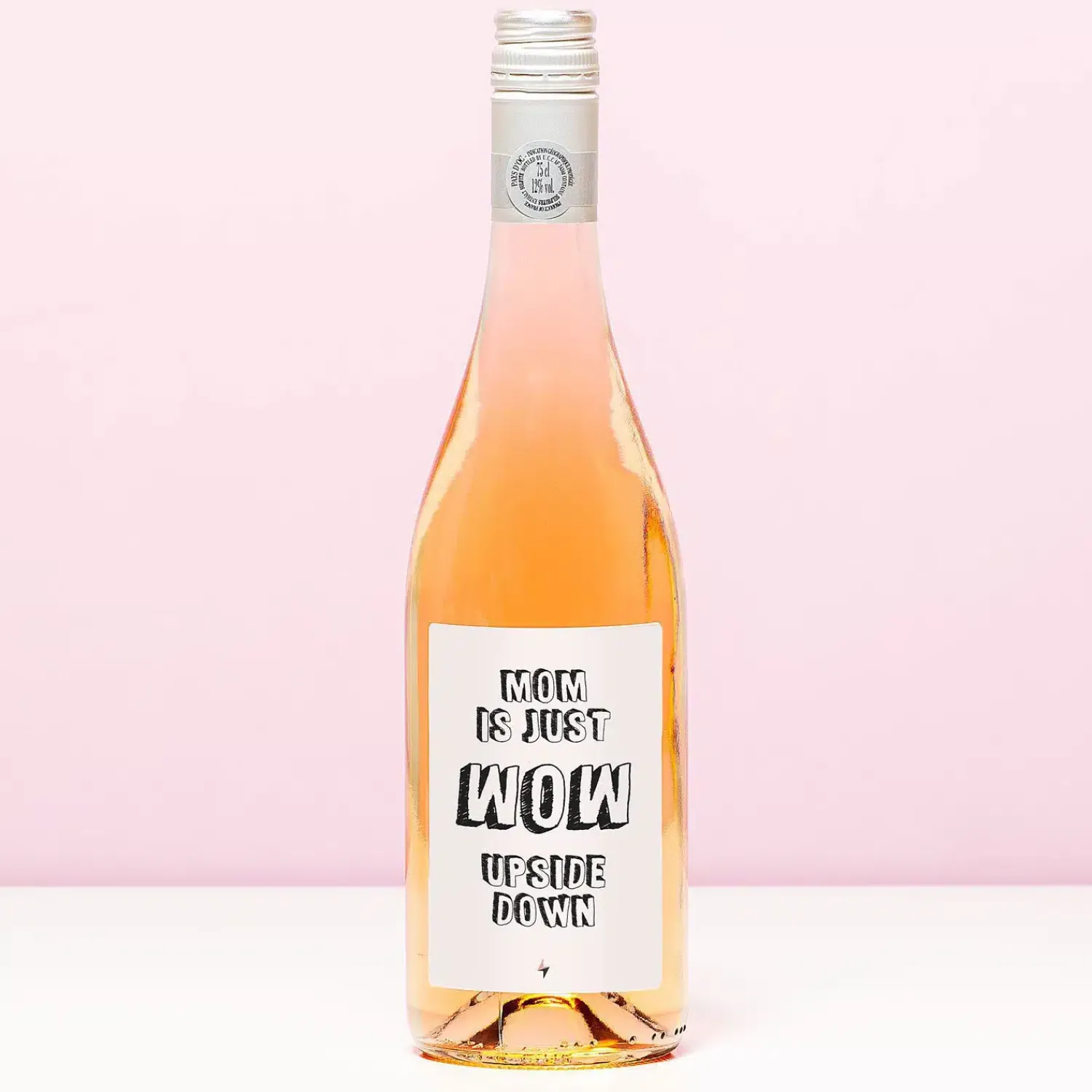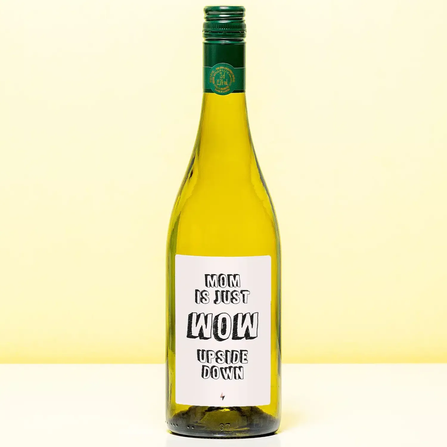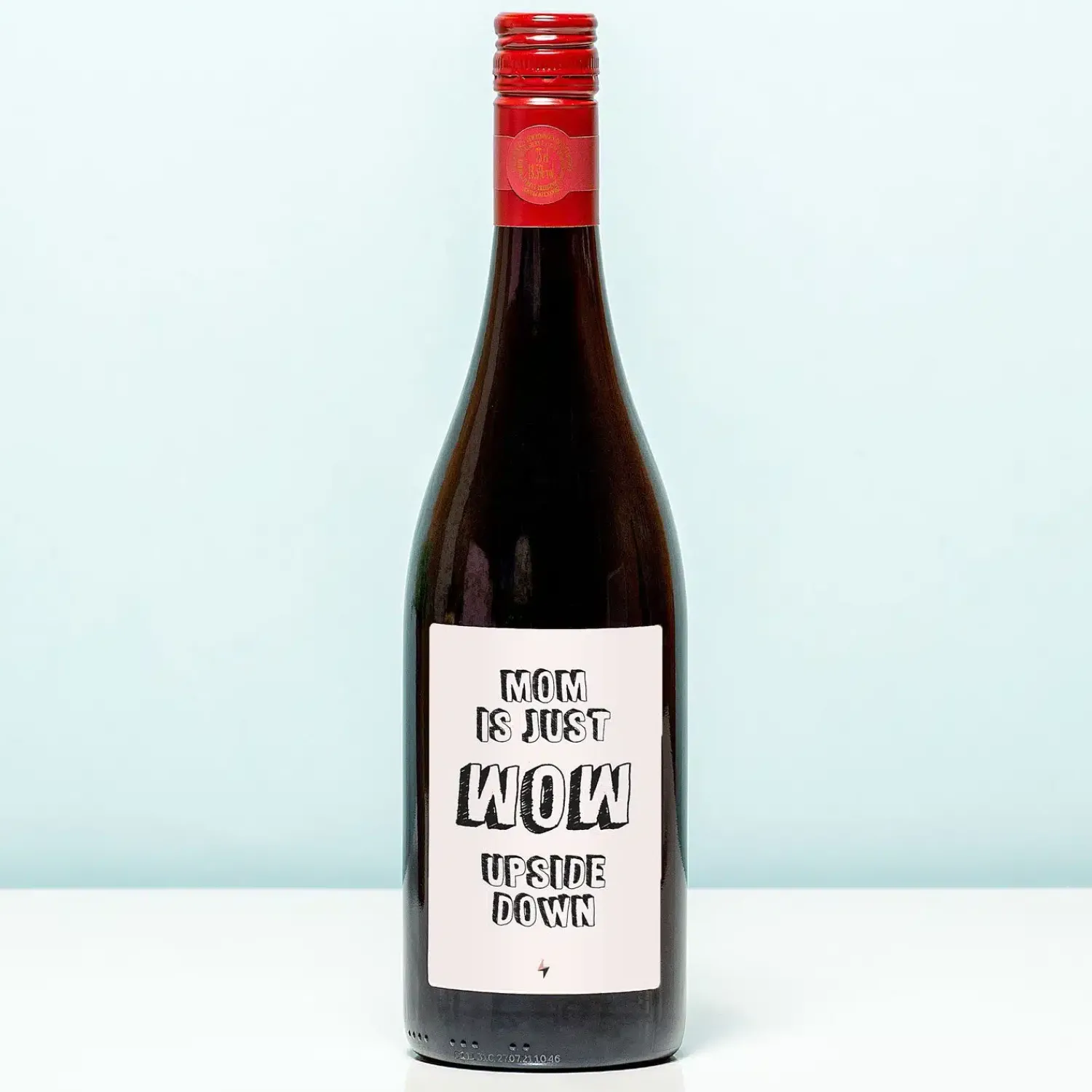 Heb je er ooit over nagedacht dat als je WOW omdraait, er MOM staat? Heel erg passend, wat ons betreft! Verras je moeder met de Wijnfles Mom is wow upside down, om haar te laten weten hoe dol je op haar bent. Op de wijnfles zit een etiket met de tekst: Mom is just wow upside down. Een leuk cadeau voor je moeders verjaardag of Moederdag.